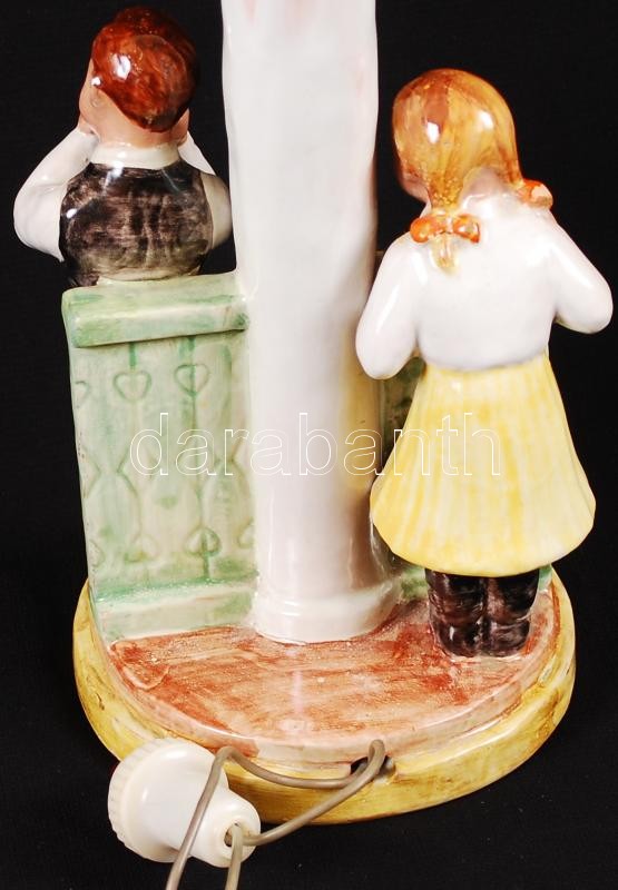 Leírás: Párocska asztali lámpa, mázas kerámia, jelzés nélkül, apró lepattanásokkal, bura nélkül, m:32 cm