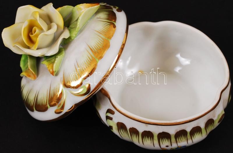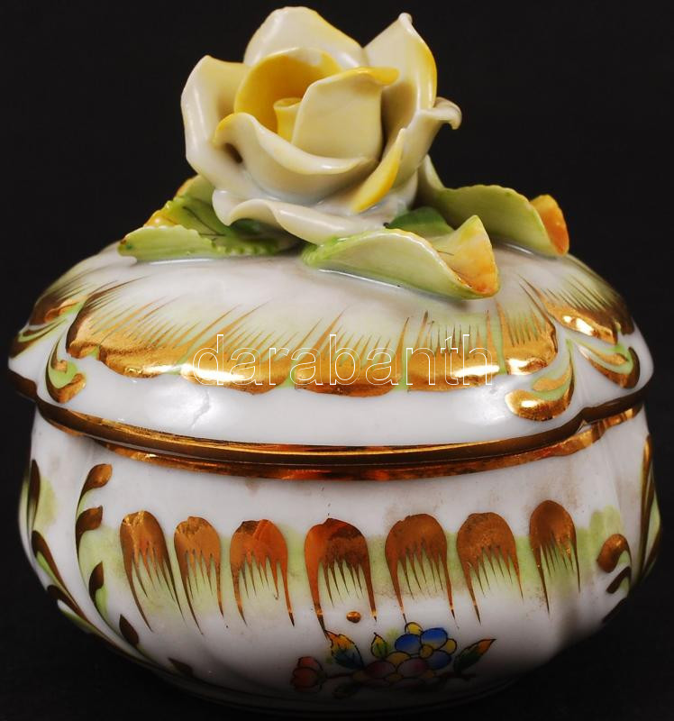 Leírás: Herendi Viktória mintás bonbonier, apró lepattanás a rózsán, kézzel festett, jelzett, m:7 cm, d:8 cm