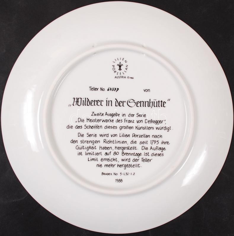 Lilien porcelángyár: Die Meisterwerke des Franz von Defregger jelzett gyűjtői porcelán tányér eredeti dobozában, ismertetővel, nem használt / Collector porcelain plate in original box. d: 26 cm