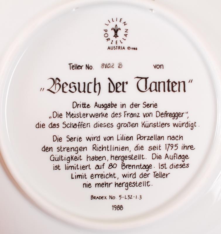 Lilien porcelángyár: Die Meisterwerke des Franz von Defregger jelzett gyűjtői porcelán tányér eredeti dobozában, ismertetővel, nem használt / Collector porcelain plate in original box. d: 26 cm