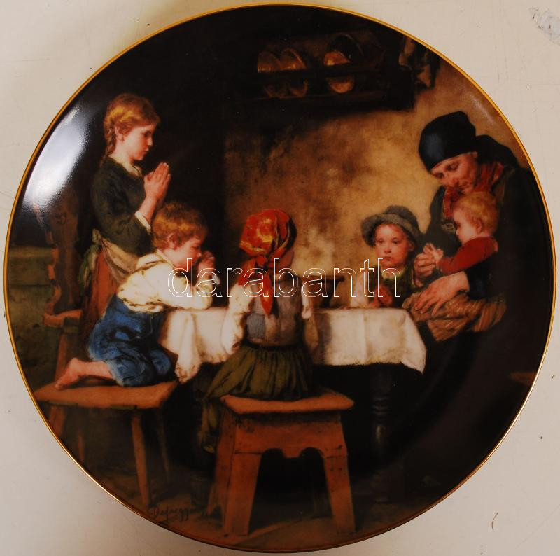 Lilien porcelángyár: Die Meisterwerke des Franz von Defregger jelzett gyűjtői porcelán tányér eredeti dobozában, ismertetővel, nem használt / Collector porcelain plate in original box. d: 26 cm