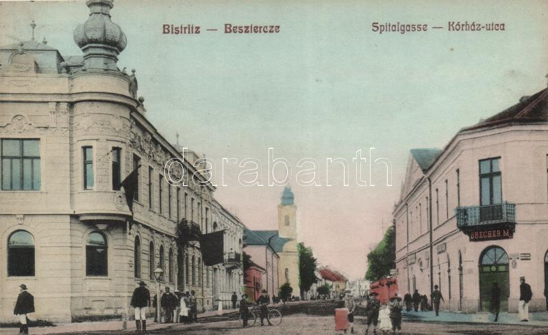 Leírás: Beszterce, Kórház utca, Brecher M. üzlete / hospital street, shop, Guido Scharsach