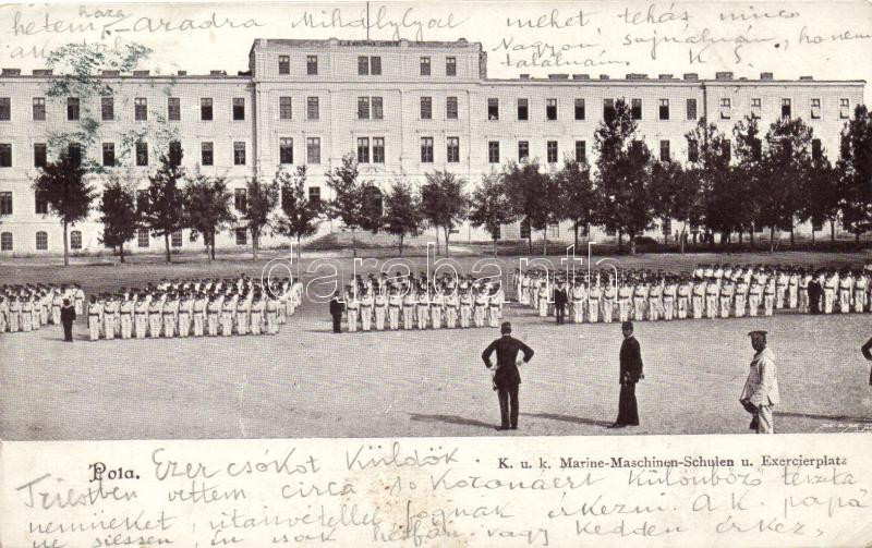 Pola, K.u.K. Marine-Maschinen-Schulen und Execierplatz / marine school https://www.darabanth.com/hu/211-Gyorsarveres/211.0/Kepeslapok/Horvatorszag-Delvidek~800010/Pola-KuK-Marine-Maschinen-Schulen-und-Execierplatz-marine-school~II872354