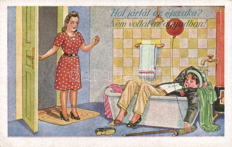 'Hol jártál az éjszaka?' humour; Kaszás Jámbor stílusú humoros képesla... https://www.darabanth.com/hu/211-Gyorsarveres/211.0/Kepeslapok/Humor~800086/Hol-jartal-az-ejszaka-humour-Kaszas-Jambor-stilusu-humoros-kepeslap-EK~II832276