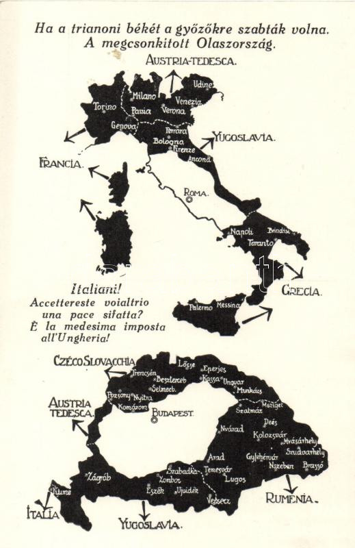 Fordított trianoni béke; a Magyar Nemzeti Szövetség kiadása / Reversed... https://www.darabanth.com/hu/211-Gyorsarveres/211.0/Kepeslapok/Irredenta~800088/Forditott-trianoni-beke-a-Magyar-Nemzeti-Szovetseg-kiadasa-Reversed-Trianon-peace-treaty-It~II872211