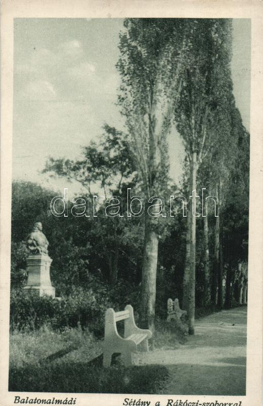 Balatonalmádi, Sétány, Rákóczi szobor https://www.darabanth.com/hu/211-Gyorsarveres/211.0/Kepeslapok/Magyarorszag~800006/Balatonalmadi-Setany-Rakoczi-szobor~II869045