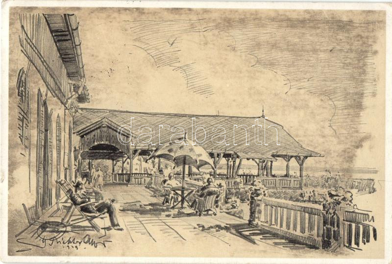 Leírás: Balatonkenese, Székesfővárosi alkalmazottak üdülőtelepe, vendéglői terasz s: ifj. Richter Aladár