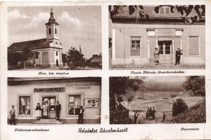 Rácalmás, Római katolikus templom, Kocsis Kálmán fűszerkereskedése, Fö... https://www.darabanth.com/hu/211-Gyorsarveres/211.0/Kepeslapok/Magyarorszag~800006/Racalmas-Romai-katolikus-templom-Kocsis-Kalman-fuszerkereskedese-Foldmuves-szovetkezet-~II857901