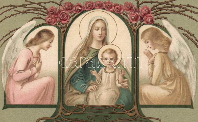 Mary, Jesus, angels, floral Art Nouveau Emb. litho https://www.darabanth.com/hu/211-Gyorsarveres/211.0/Kepeslapok/Vallas~800119/Mary-Jesus-angels-floral-Art-Nouveau-Emb-litho~II874883
