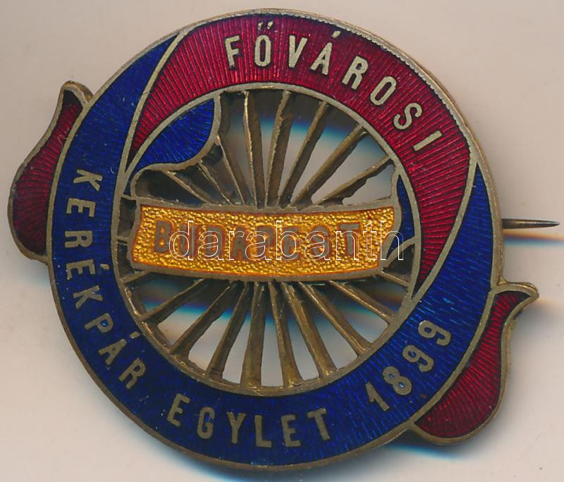 1899. "Fővárosi Kerékpár Egylet 1899 - Budapest" zománcozott jelvény (... https://www.darabanth.com/hu/211-Gyorsarveres/211.0/Numizmatika/Falerisztika-Kituntetesek-jelvenyek~600016/1899-Fovarosi-Kerekpar-Egylet-1899--Budapest-zomancozott-jelveny-335mm-T1-~II869195