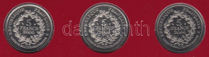 Franciaország 2000. 5Fr CuNi (3xklf) "2000 éves a francia éremverés" dísztokos szett 2/3 példánya T:BU
