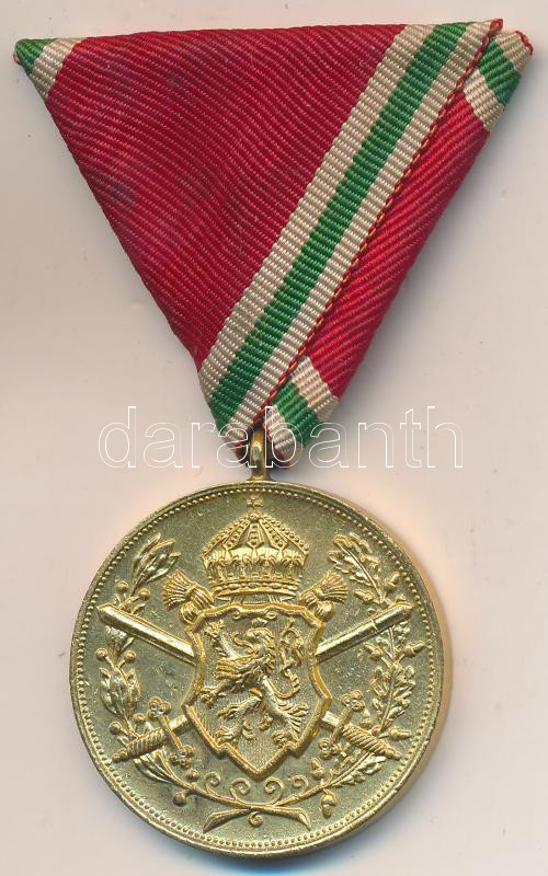 1938. Bulgarian Commemorative Medal for World War I for combatants, gilt Br medal on wartime ribbon with Bulgarian certificate C:XF,VF