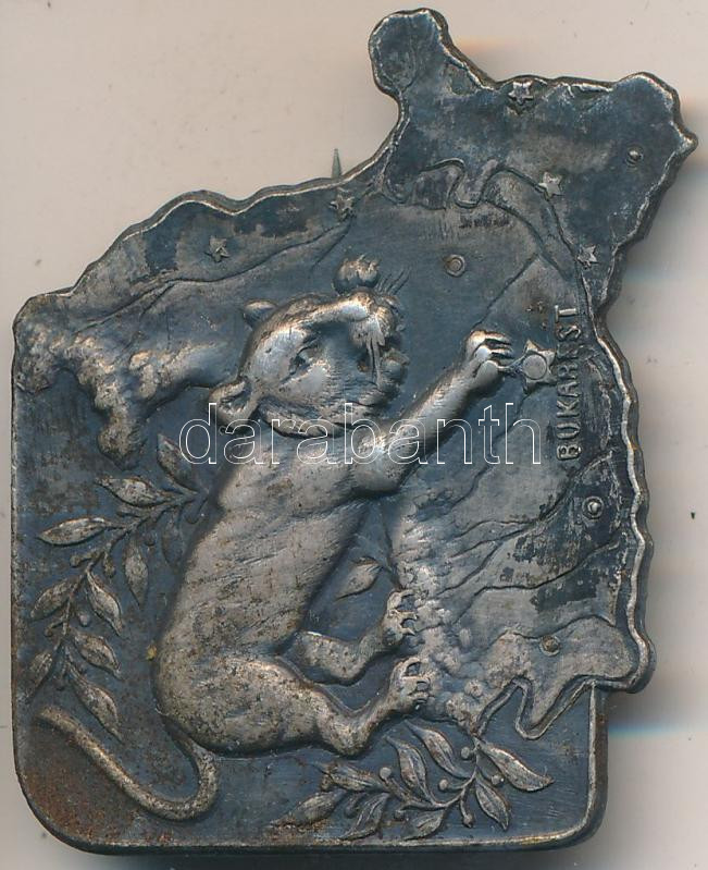 Leírás: Osztrák-Magyar Monarchia 1916. "Tigris Brigád - Bukarest elfoglalása" ezüstözött vas sapkajelvény (36x42mm) T:2