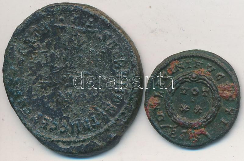 Leírás: Roman Empire / Siscia / Licinius I. 318-319. Follis Br "IMP LICI-NIVS AVG / DN LICINI AVGVSTI - VOT XX / BSIS" (3.05g) RIC VII Siscia 150 + Roman Empire / Maximianus Herculius ~286-310. Follis Br "IMP C MAXIMIANVS PF AVG / SACRA MONET AVGG ET CAESS NOSTR / TP." (8.76g) T:XF,VF