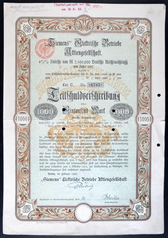 1905-1946. 7klf részvény és kötvény, 5 magyar, egy amerikai és egy ném...