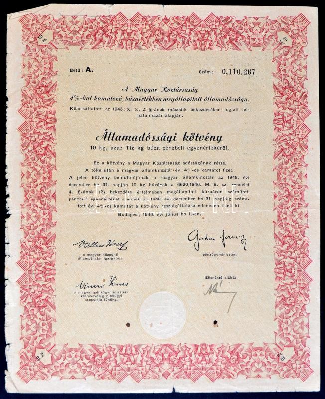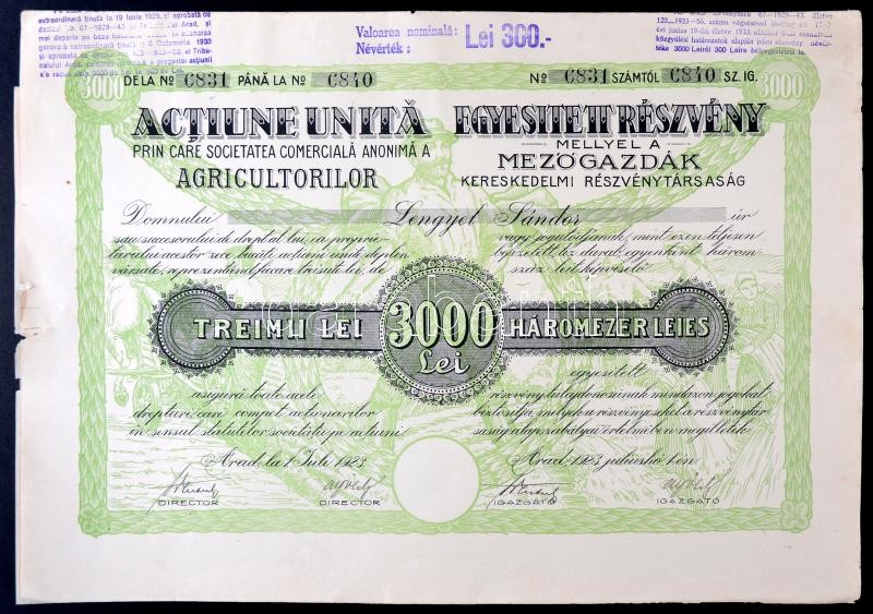 1905-1946. 7klf részvény és kötvény, 5 magyar, egy amerikai és egy német, benne a Magyar Jelzálog Hitelbank nyeremény kötvénye, államadóssági kötvény és a MezÅ‘gazdák Kereskedelmi Részvénytársaság egyesÃtett részvénye T:vegyes