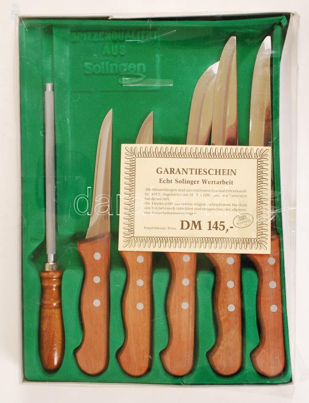 Leírás: Solingen jelzésű kés szett, karton dobozban, 36×26 cm