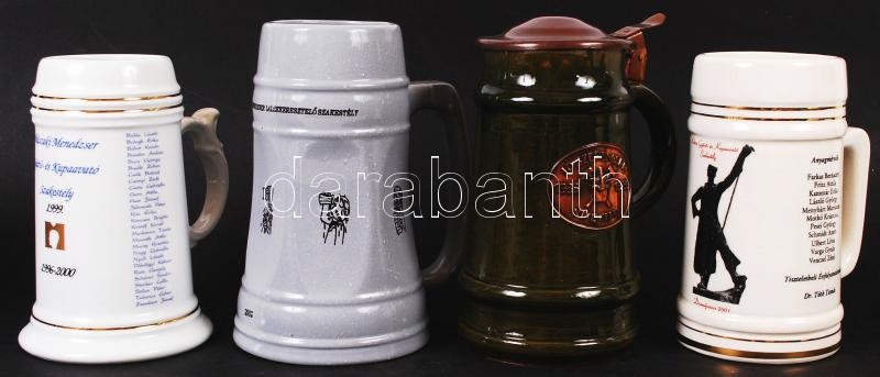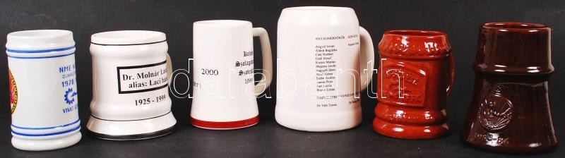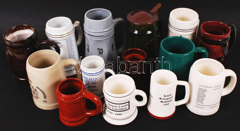 Leírás: 14 db sörös korsó különféle méretekben, kohászati, bányászati feliratokkal, hibátlanok, több jelzett