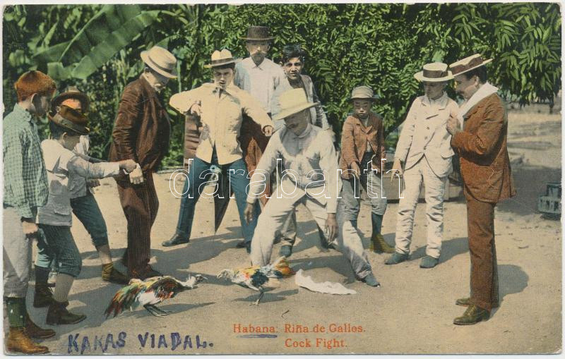 Havana, Cock fight, folklore, No. 52. https://www.darabanth.com/hu/213-Gyorsarveres/213.0/Kepeslapok/Kuba~600397/Havana-Cock-fight-folklore-No-52~II890362