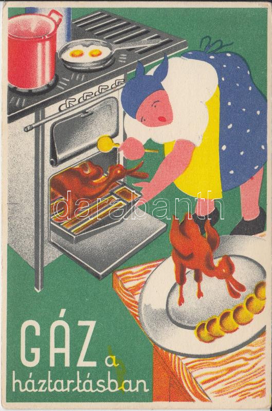 Gáz a háztartásban, gáztűzhely reklám / gas cooker advertisement https://www.darabanth.com/hu/213-Gyorsarveres/213.0/Kepeslapok/Reklam~600408/Gaz-a-haztartasban-gaztuzhely-reklam-gas-cooker-advertisement~II891404