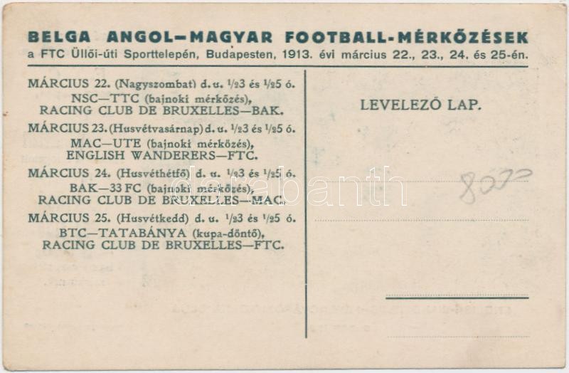 1912 London, English-Wanderers és Ferencvárosi Torna Club labdarúgó csapata, hátoldalon bajnoki mérkőzések / English and Hungarian football teams, matches on the backside (EK)