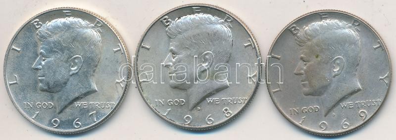 Leírás: Amerikai Egyesült Államok 1967,1968,1969. 1/2$ Ag "Kennedy" (3x) T:2