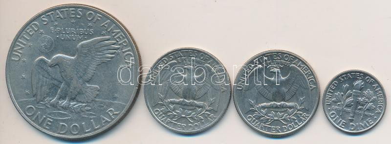 Leírás: Amerikai Egyesült Államok 1972. 1$ "Eisenhower" + 1979-1983P 1/4$ "Washington" (2x) + 1990P 1D "Roosevelt" T:2