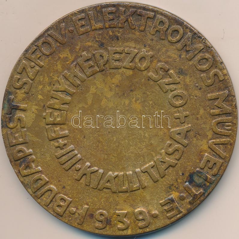 Leírás: Turáni Kovács Imre (1910-1975) 1939. " Budapest Székesfőváros Elektromos Műve - Fényképező Szakosztály III. kiállítása" Br emlékérem (81mm) T:2
