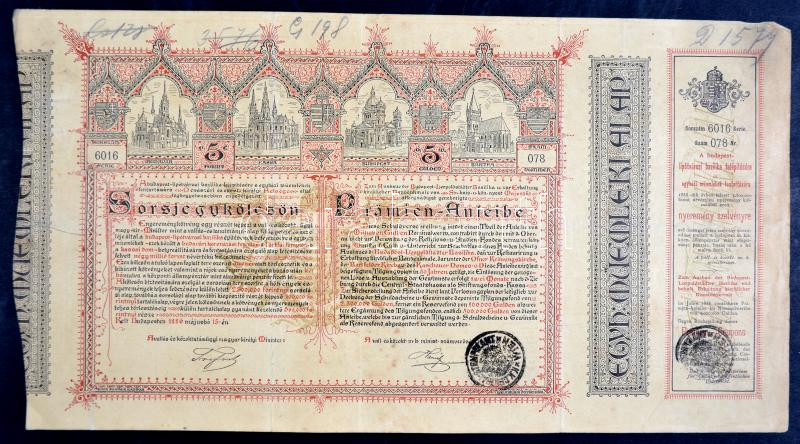 Leírás: Budapest 1886. "Egyházi Műemlék Alap" Sorsjegykölcsöne 5Ft-ról a budapest-lipótvárosi bazilika kiépítésére s egyházi műemlékek fenntartására T:III