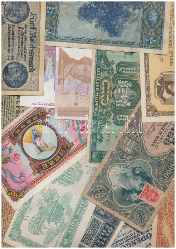 Leírás: Vegyes, 52db klf magyar (korona, pengő, forint) és külföldi bankjegy, sorsjegy T:I,II,III