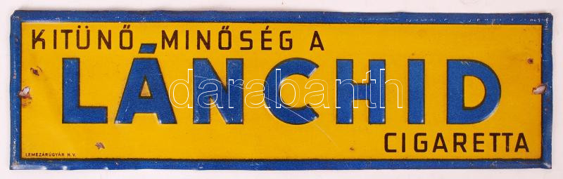 Leírás: "Kitűnő minőségű a Lánchíd cigaretta" feliratú fém reklámtábla, 24x7 cm