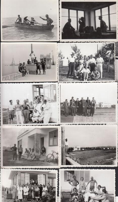 Leírás: 1935 Szántód és környéke, balatoni nyaralók fotótétele, 13 db fénykép, 6x8 cm