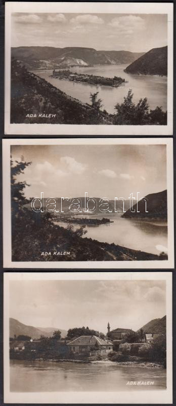 Leírás: Ada Kaleh, ma már nem létező sziget a Vaskapunál, 3 db fotó, feliratozva, 9x7 cm