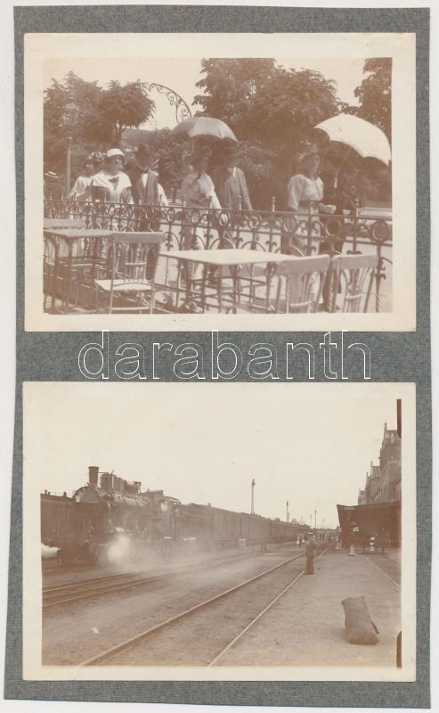 Leírás: cca 1900 Arad, vasútállomás (az épületen levő kis táblák olvashatóak), 2 db fénykép kartonra ragasztva, 9x12 cm