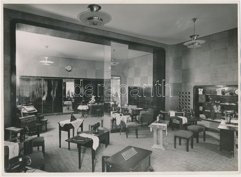 Leírás: cca 1930-1940 Seidner Zoltán (Budapest): Málik József budapesti varrógép szaküzlete, pecséttel jelzett vintage fotó, 18x24 cm