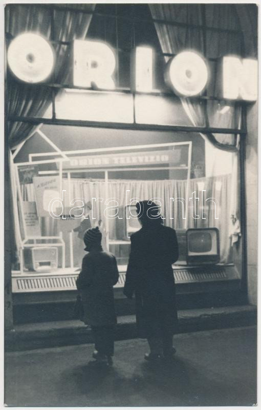 cca 1960-1970 Szabó Gyula: ORION televíziók reklám kirakata, 14x9 cm https://www.darabanth.com/hu/214-Gyorsarveres/214.0/Festmeny-mutargy-papirregiseg-egyeb/Foto~21/cca-1960-1970-Szabo-Gyula-ORION-televiziok-reklam-kirakata-14x9-cm~II893216
