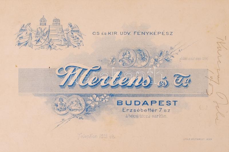 Leírás: 1903 Keményhátú fotó, Katonaportré, Budapest, hátoldalon feliratozva / Military photo, portrait of a soldier, label of the back