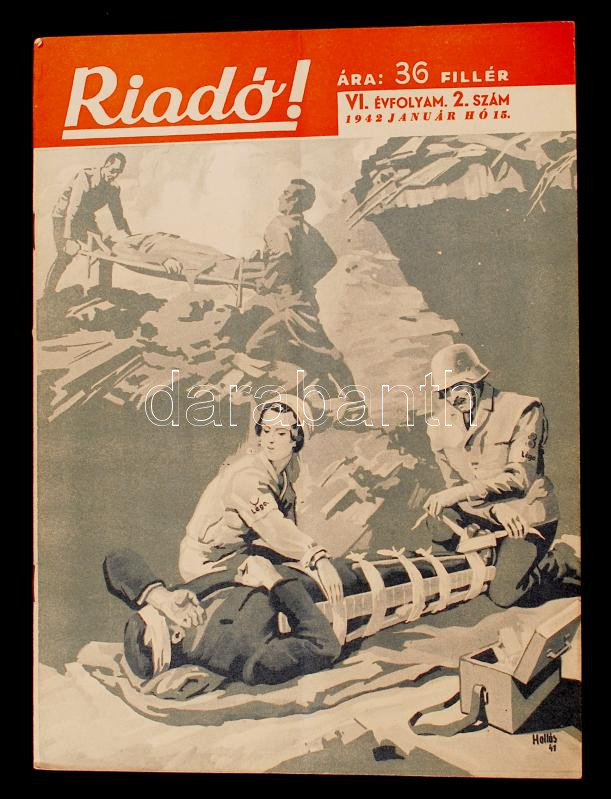 1942 A Riadó! a Légoltalmi Liga lapjának Vi. évfolyam 2. száma https://www.darabanth.com/hu/214-Gyorsarveres/214.0/Festmeny-mutargy-papirregiseg-egyeb/Nyomtatvanyok~29/1942-A-Riado-a-Legoltalmi-Liga-lapjanak-Vi-evfolyam-2-szama~II896954