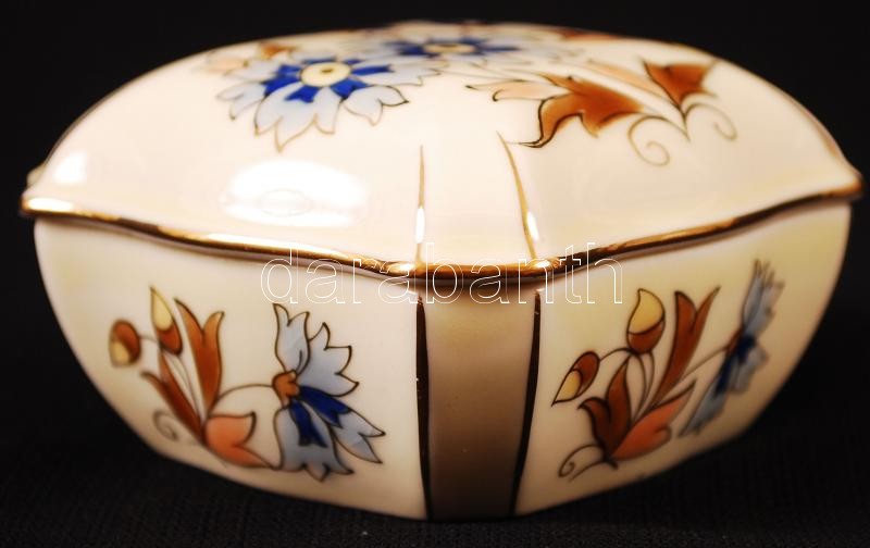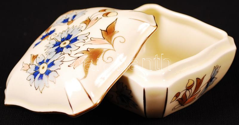 Leírás: Zsolnay búzavirág mintás ékszeres dobozka, kézzel festett, jelzett, hibátlan, 8×7,5 cm