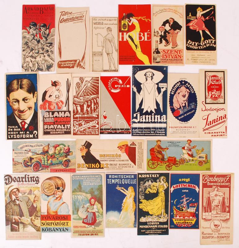23 db érdekes és szép számolócédula (Lysoform, Mauthner, Blaha Lujza puder, Gottschlig, Janina, Dearlingszivarka, Fővárosi Sörfőző R.T., Árkád Bazár, stb.)