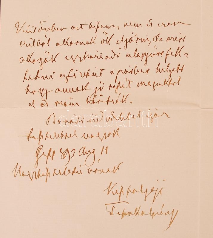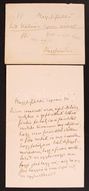 1893. aug. 11., Geszt. Tisza Kálmán nagyszalontai egyházmegyei gondnok, korábbi miniszterelnök levele Szél Kálmán nagyszalontai esperesnek a geszti egyházi adó ügyében.