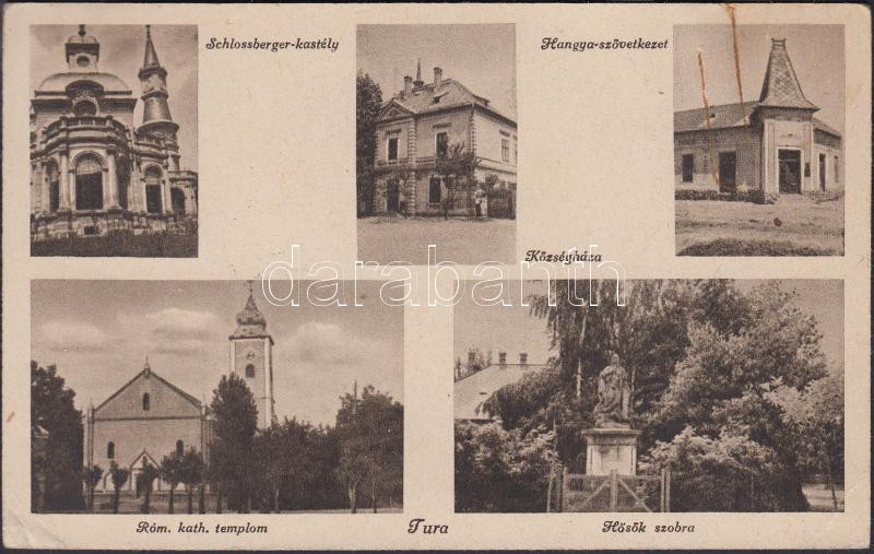 Leírás: Tura, Schlossberger kastély, Hangya, Községháza (EK)
