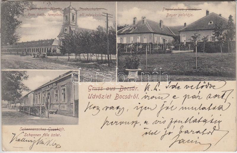 Bocsár, Schannen-féle üzlet, Bayer palotája, katolikus templom / Schan... https://www.darabanth.com/hu/214-Gyorsarveres/214.0/Kepeslapok/Vajdasag~200009/Bocsar-Schannen-fele-uzlet-Bayer-palotaja-katolikus-templom-Schannens-shop-Palace-Bayer-~II895833