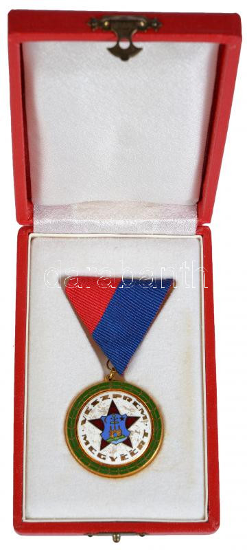 Leírás: ~1970. "Veszprém Megyéért" arany fokozatának tűzzománcozott kitüntetése mellszalagon dísztokban T:2
