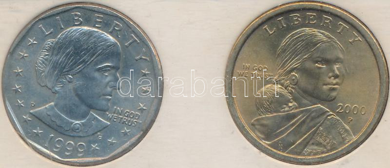 Amerikai Egyesült Államok 1999P 1$ "Susan B. Anthony" + 2000P 1$ "Sacagawea" "Millennium pénzei" tokban T:1-,2