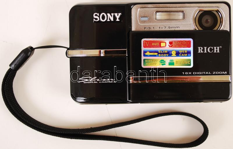 Sony Slim digitális fényképezőgép, 10.0 megapixel, 16x digitális zoom,... https://www.darabanth.com/hu/215-Gyorsarveres/215.0/Festmeny-mutargy-papirregiseg-egyeb/Fenykepezogepek-kamerak-kellekek~17/Sony-Slim-digitalis-fenykepezogep-100-megapixel-16x-digitalis-zoom-1-GB-SD-memoriakartya~II904529