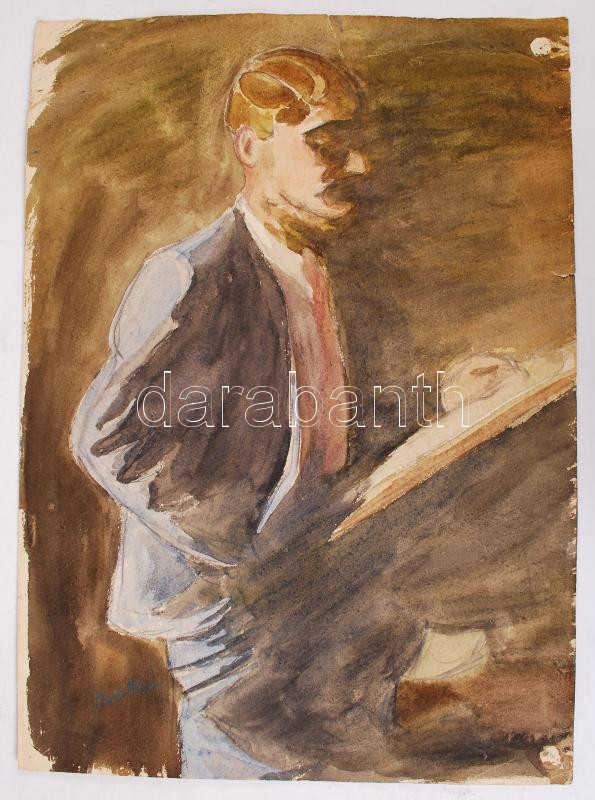 Jelzés nélkül: Olvasó férfi. Akvarell, papír, kis szakadással, 38×29 c... https://www.darabanth.com/hu/215-Gyorsarveres/215.0/Festmeny-mutargy-papirregiseg-egyeb/Festmenyek-es-grafikak~1/Jelzes-nelkul-Olvaso-ferfi-Akvarell-papir-kis-szakadassal-38C39729-cm~II891946