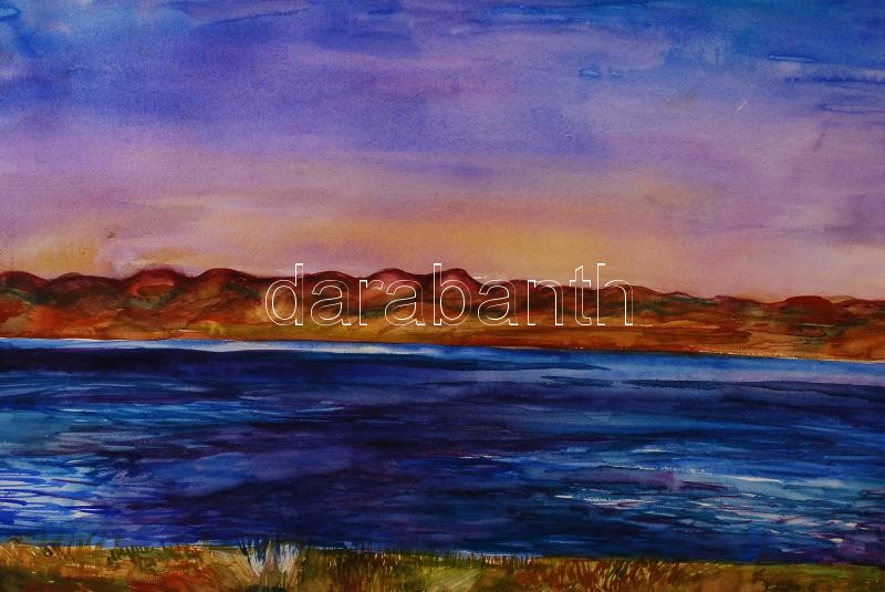 Leírás: Ogirumurh jelzéssel: Mongólia. Akvarell, papír, gyűrött, 49×62 cm