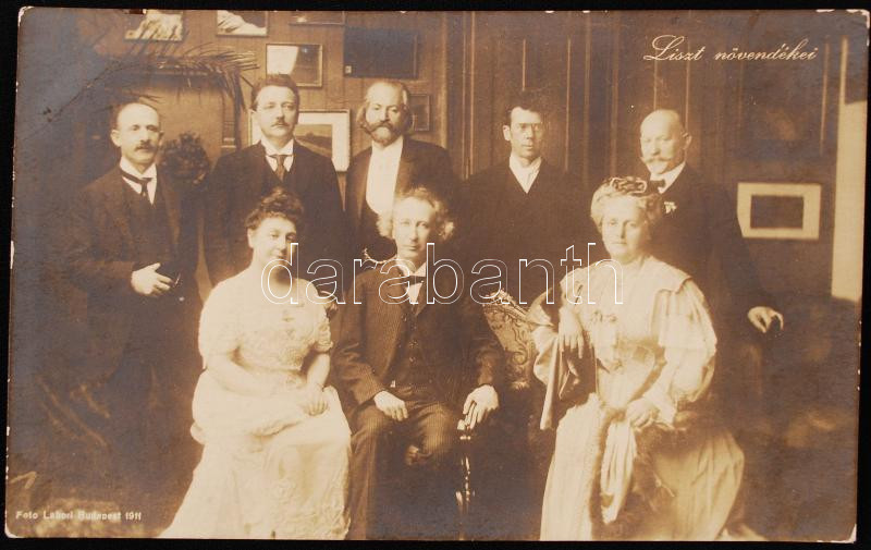 1911 Labori Budapest: Liszt növendékei, fotólap, feliratozva, 13x8 cm https://www.darabanth.com/hu/215-Gyorsarveres/215.0/Festmeny-mutargy-papirregiseg-egyeb/Foto~32/1911-Labori-Budapest-Liszt-novendekei-fotolap-feliratozva-13x8-cm~II906707