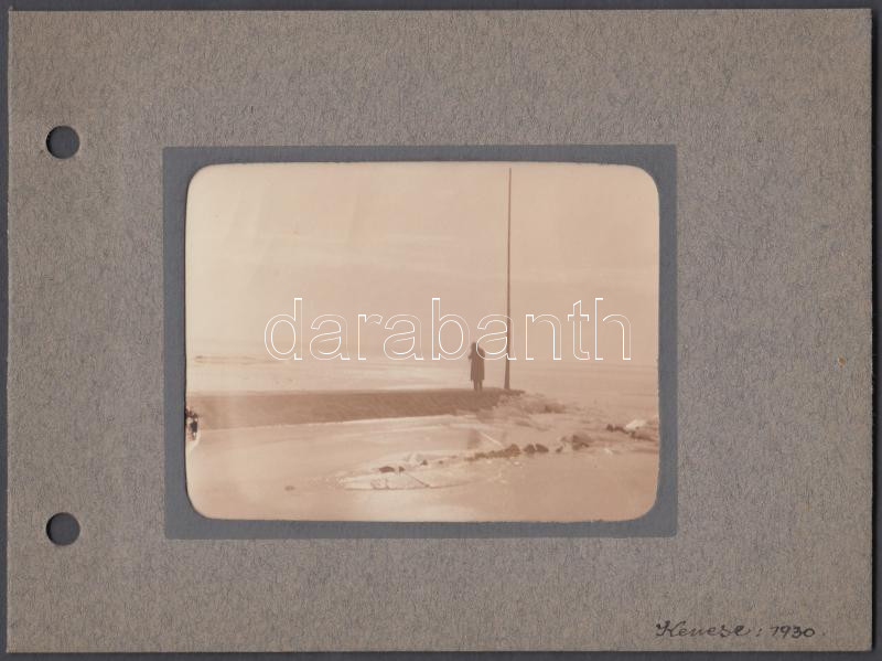 Leírás: 1930 Kenese, balatoni tájkép télen, a fénykép kivehető az album feliratozott, duplafalú lapjából, 9x12 cm